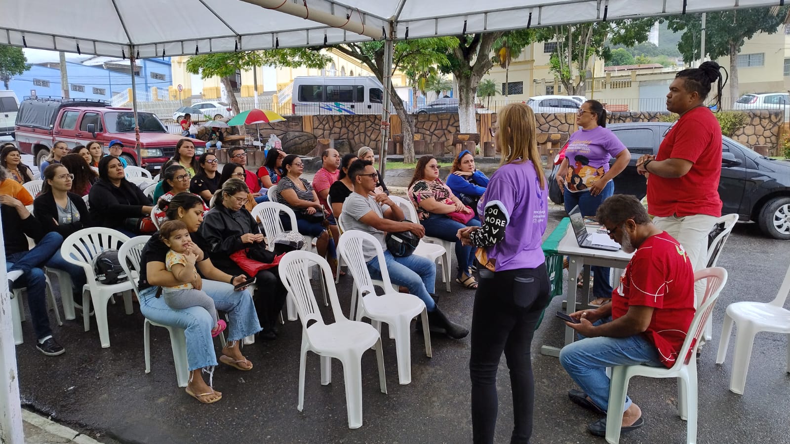 Organizada pelo núcleo regional, a assembleia contou com a presença dos dirigentes. Além da presidenta Maria da Saúde, estavam lá o vice Carlos Teles, a secretária de Imprensa e Comunicação Jeniffer Ferreira, a Tesoureira Gelva Lima, o Secretário de Formação Sindical Rubens Francilino, a secretária adjunta Hérika Verônica, e a Secretária de Aposentados Cristina Mota.