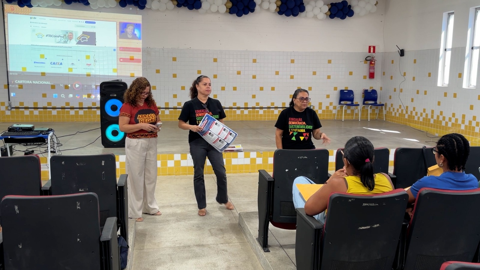 O Sinteal lançou seu Jornal Mural de 2026 durante Jornada Pedagógica da Escola Nosso Lar, no bairro de Ponta Grossa, em Maceió, realizada na manhã desta quarta-feira (4), cujo tema central foi “Profissão Professor”. Quem representou o Sindicato foram Margarete Mota, Secretária de Assuntos Educacionais; Girlene Lázaro, Secretária Adjunta de Assuntos Educacionais; e Rosiele Guimarães, Secretária de Assuntos Municipais.