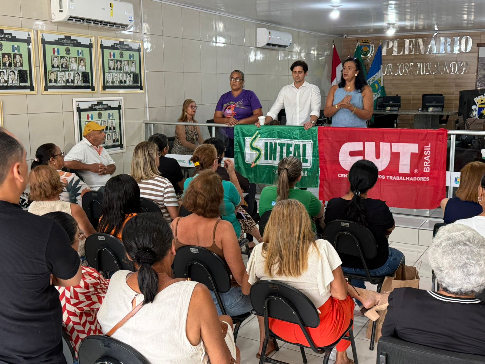 A assembleia foi realizada no espaço da Câmara Municipal de vereadores, e também contou com a presença da diretora da de assuntos jurídicos da executiva Estadual, Cícera Ferreira, e do advogado do Sinteal, Anderson Barbosa.