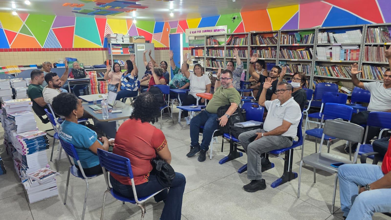 O Sinteal participou, na manhã desta segunda-feira (2), de uma reunião com as professoras e professores da Escola Estadual Rubens Canuto, no Benedito Bentes. Com as aulas suspensas por falta de condições mínimas nas salas de aula devido ao calor excessivo, a equipe se reuniu na escola para discutir como lidar com o problema.