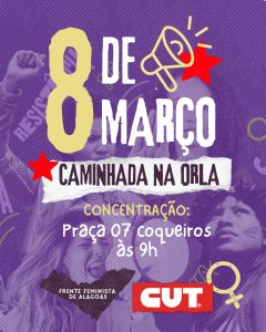 “As vozes de mulheres ecoarão durante o percurso até o Marco dos Corais com discursos, palavras de ordem e apresentação cultural das cantoras Mel Nascimento, Mary Alves, Fernanda Guimarães e Aline Sakura. As vozes da resistência e da rebeldia farão um chamado à sociedade para romper com o modelo patriarcal, machista e misógino que ceifam a vida das mulheres física, psicológica e moralmente”, relata Lenilda Lima, secretária de Mulheres da CUT em Alagoas.