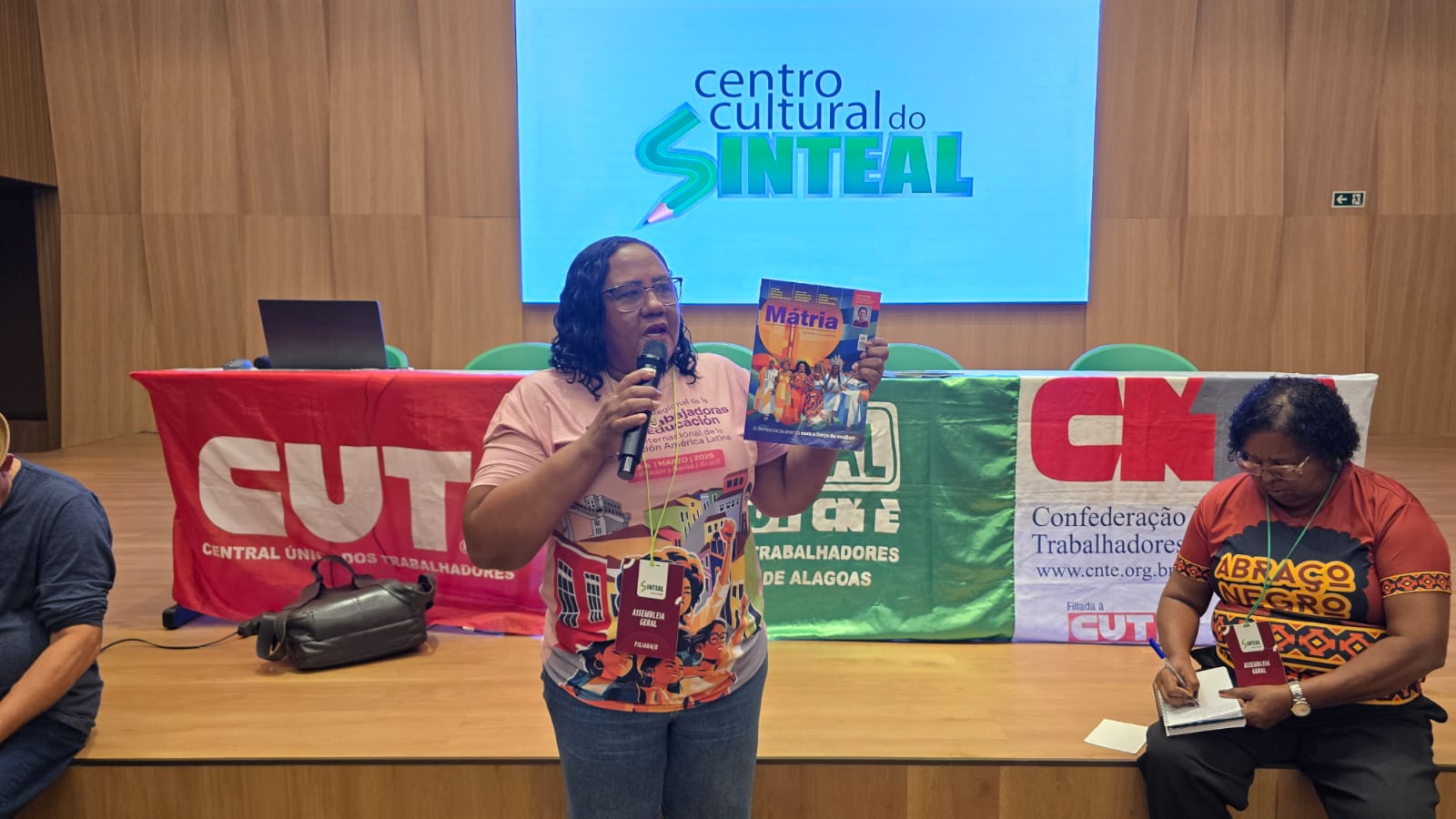 “Todo ano, no mês de março, a CNTE lança a Revista Mátria. O nome é a versão feminina de pátria, trazendo uma reflexão sobre uma sociedade com um olhar da luta das mulheres. A edição deste ano está com um conteúdo muito bom, trazendo inclusive subsíduos que podem ser trabalhados em sala de aula”, sugeriu Francisca.