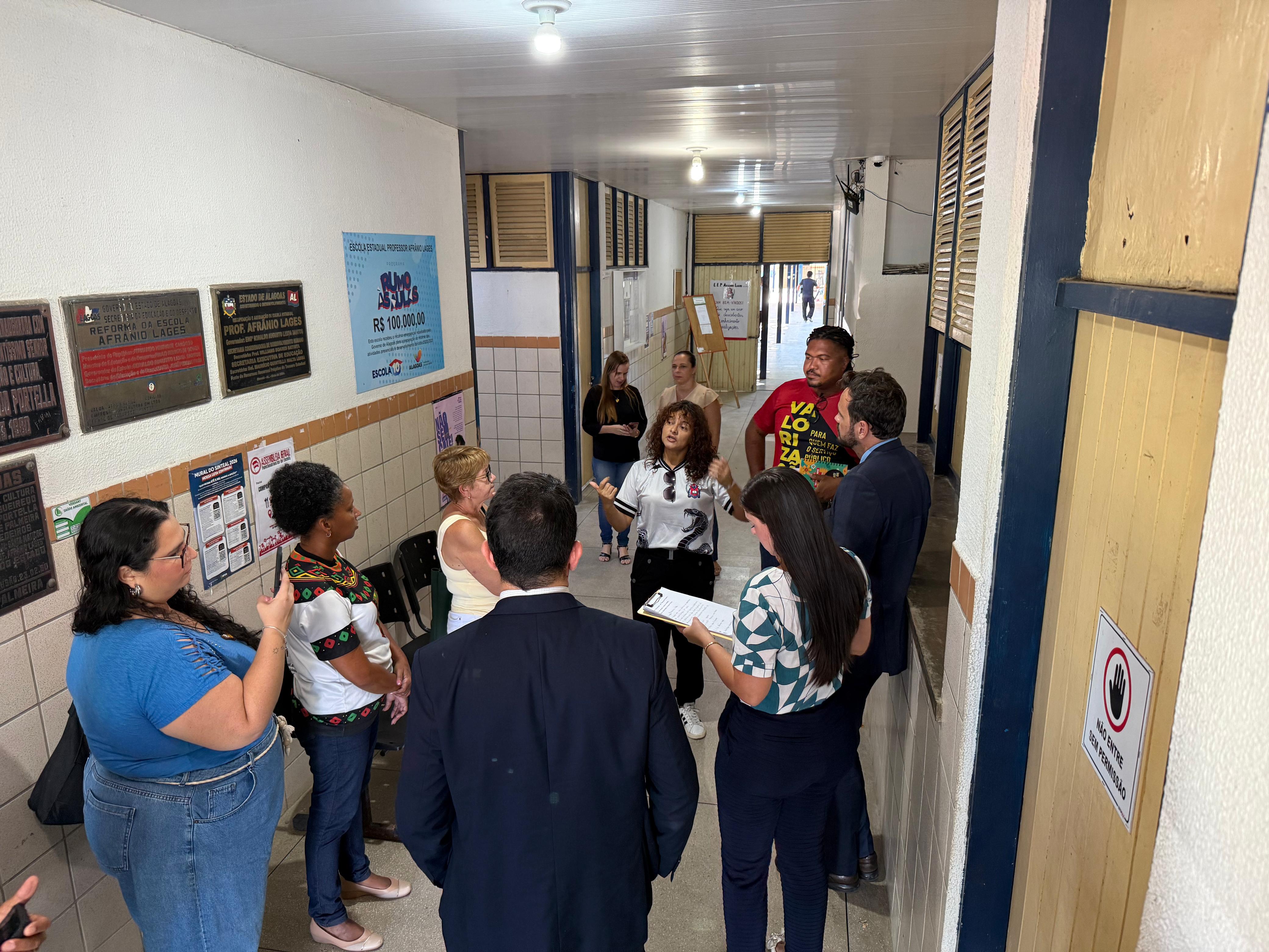No início da tarde desta segunda-feira (9), dirigentes do Sinteal e membros do Ministério Público de Alagoas (MPAL) vistoriaram escolas do Cepa para conferir a situação de esvaziamento das unidades de ensino e falta de estrutura para o ensino técnico.